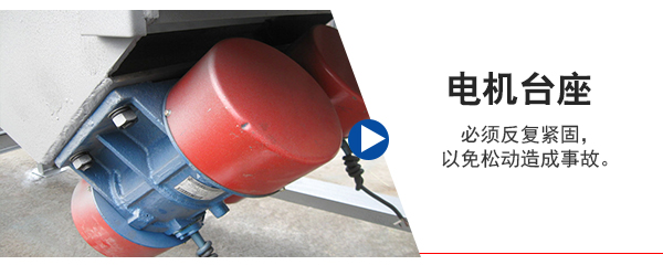 5、電機(jī)臺座:安裝振動電機(jī),使用前連接螺釘必須擰緊,特別是新篩機(jī)試用前三天、必須反復(fù)緊固,以免松動造成事故。