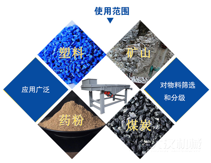 直線振動篩可對粉狀、顆粒狀物料的篩選和分級,廣泛應用于塑料、磨料、石英砂、化工、醫(yī)藥、建材、糧食、炭素、化肥等行業(yè)。