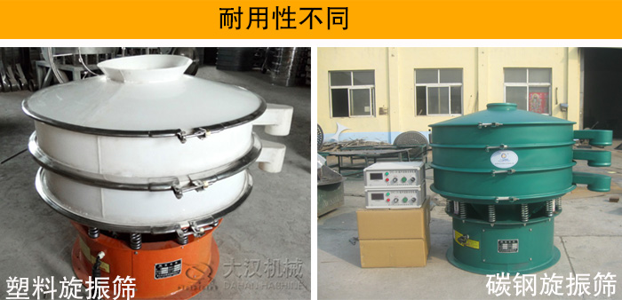 材質上不同是塑料旋振篩和普通旋振篩的根本性差別,普通旋振篩多為碳鋼和不銹鋼材質,而為了保證塑料旋振篩的防腐特性,滿足腐蝕性行業的除雜分級需求,塑料旋振篩采用的是具有防腐性能的聚丙烯材料。這種材質上的差別不僅僅體現在邊框上,其篩網和網架等需要和物料接觸也均采用耐腐蝕的聚丙烯或聚氨酯材質,確保物料不受金屬污染。
