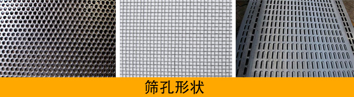 常見的篩孔形狀有圓形、方形和長方形三種,圓形和方形篩孔所得到的篩下物的形狀較為規則,而片狀和條狀的顆粒則容易從長方形篩孔中漏下,因此,長方形篩孔一般比較少用。但是,在篩分潮濕、粘性的物料時,若把長方形篩孔的長邊順著篩上物料的移動方向布置,就可減少對篩上物料的阻礙,從而減少堵塞。
