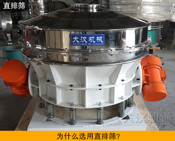 直排篩也稱作直泄式振動篩,它通過安裝在篩機兩側的振動電機產生的振篩機驅動物料在篩面上做上下運動并直接從篩面下方的排料口直接排料,大大減少了物料在篩面上的停留時間,效率非常高,產量是普通振動篩的2-5倍。其大產量的,以及并不是以精度見長的特點讓它非常適合于羥丙甲纖維素的篩分工作。