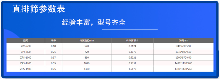 大漢自建廠已經(jīng)經(jīng)過了28個年頭,時間非常長,能夠生產(chǎn)的直排篩的型號一應(yīng)俱全,可以滿足大多數(shù)客戶的需要,具體的直排篩參數(shù)如上表所示。