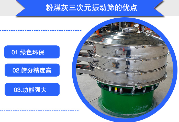大漢機械技術部根據粉煤灰是粉末狀物料,容易產生揚塵,所以推薦使用三次元振動篩進行篩分。