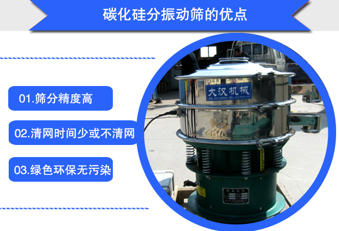 碳化硅粉是粉末狀的物料,在篩分時(shí)會(huì)出現(xiàn)靜電、粘附、團(tuán)聚導(dǎo)致卡堵網(wǎng)的現(xiàn)象,所以大漢機(jī)械的技術(shù)人員推薦使用超聲波振動(dòng)篩。