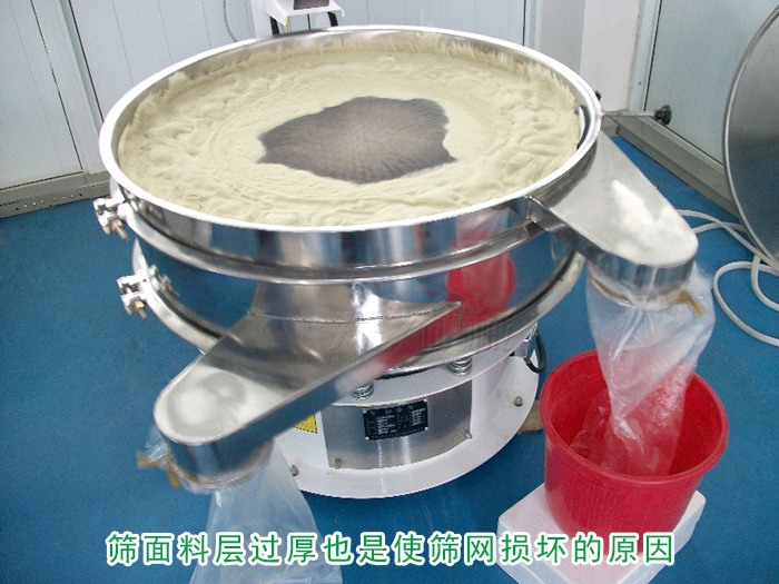 投料速度要均勻恒定,次投料量過大,篩面一次承重過大,篩網(wǎng)會因突然間沖擊過大導(dǎo)致疲勞,從而影響篩網(wǎng)使用壽命。