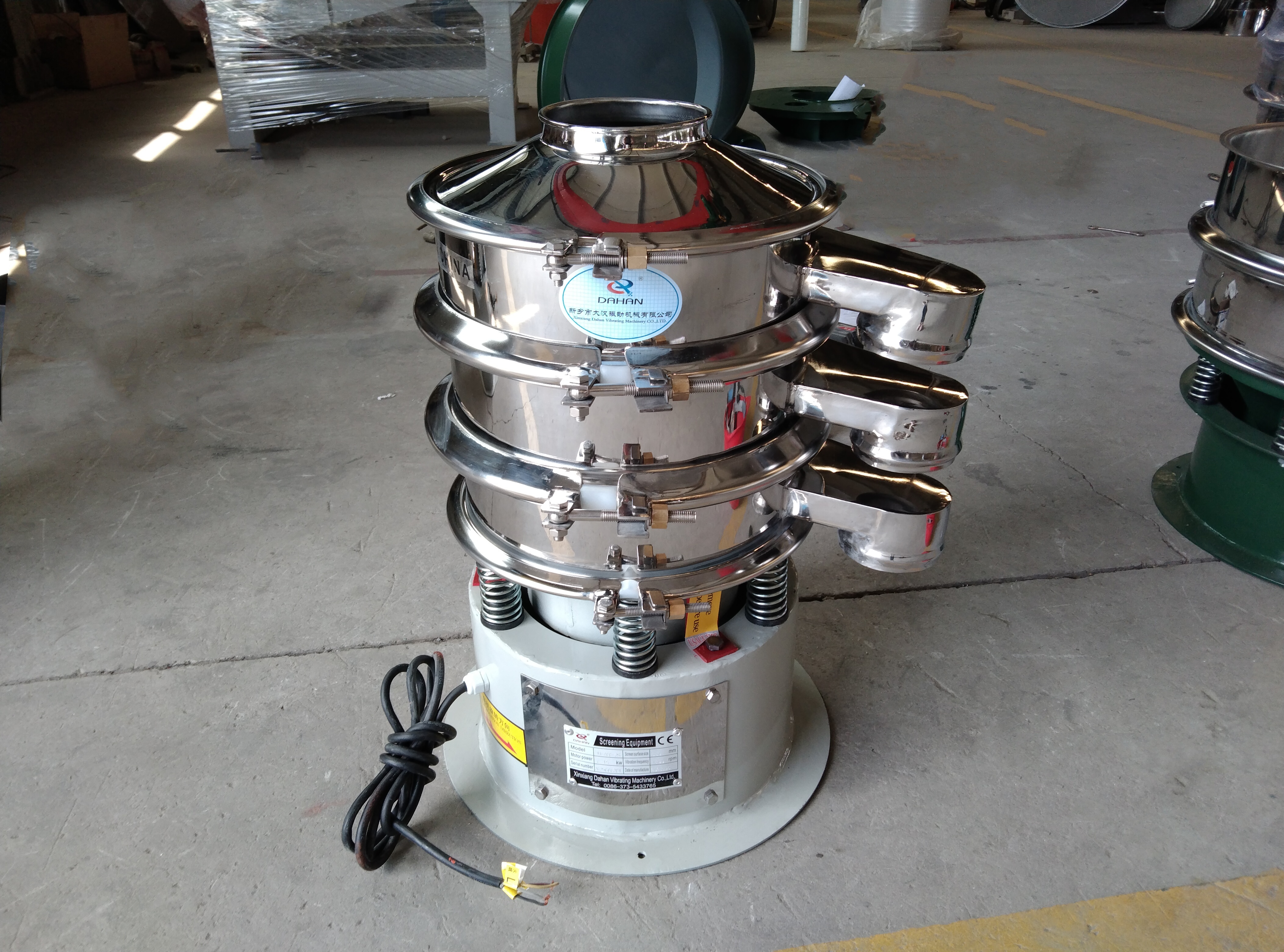 小型旋振篩:通過立式電機產生三維橢圓運動,全密閉結構防塵且換網便捷,可配置1-6層篩網,專用于食品、醫藥、化工等行業的精細篩分。