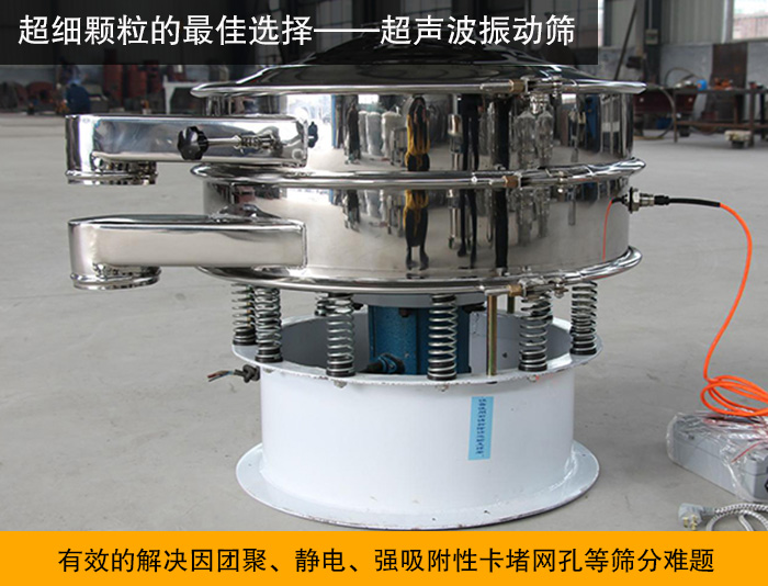 超聲筆振動篩是在傳統(tǒng)振動篩的基礎上安裝了一個低振幅、高頻率的超聲振動波(機械波),以改善超微細粉體的篩分性能,廣泛應用于制藥、冶金、化工、選礦、食品等要求精細篩分過濾的行業(yè)。篩分過濾精度高,能有效的解決因團聚、靜電、強吸附性卡堵網(wǎng)孔等篩分難題,是當前網(wǎng)孔堵塞有效的解決方法。針對超細顆粒合金粉末高精細、高靜電、高密度、輕比重的特性,超聲波振動篩可以輕而易舉的解決,是極其適合的設備。