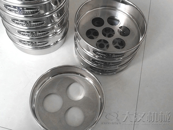 2、 篩框平整光滑,并且能方便地與篩框基本尺寸相同的其他篩、蓋、接料筒等套疊在一起。篩網(wǎng)與篩框間的連接能防止待篩物料的泄漏。